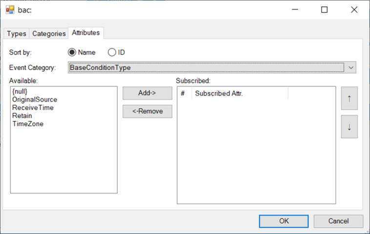 BACnet Event Category ‘BaseConditionType’ does not contain the needed extra attributes, so this does not need to be configured.