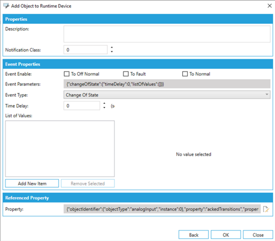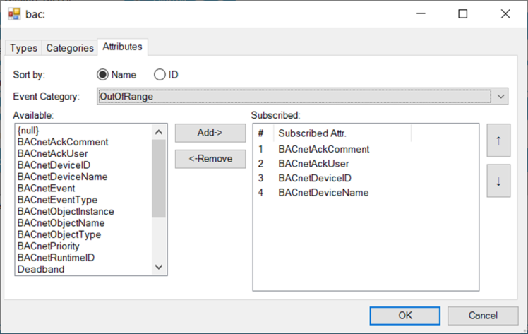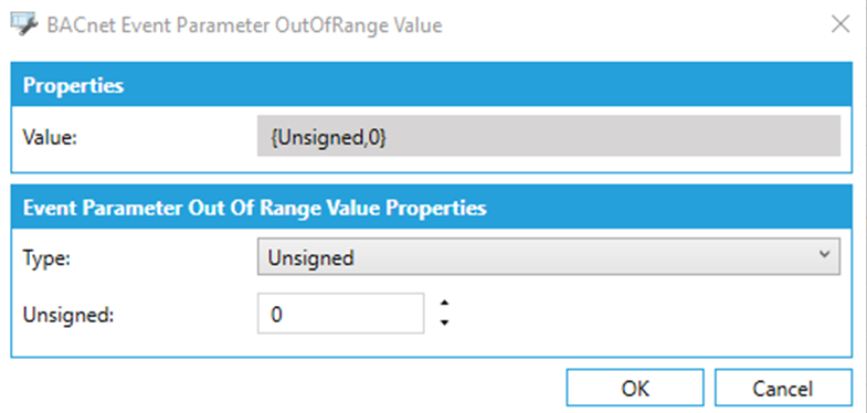BACnet Event Category ‘OutOfRange’ contains the same extra attributes so they should be configured.