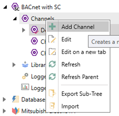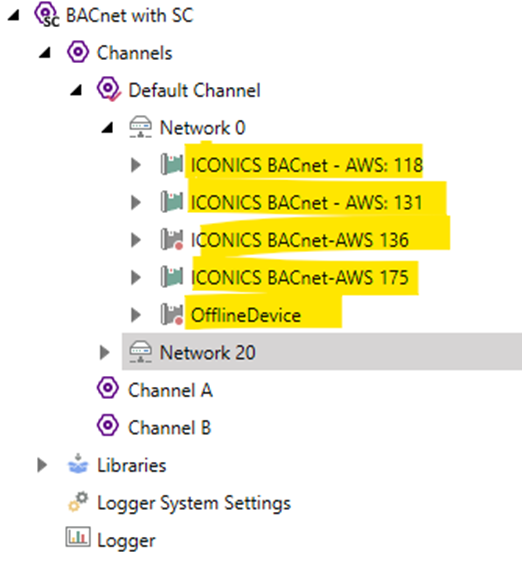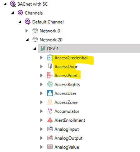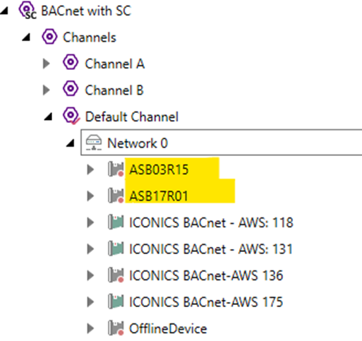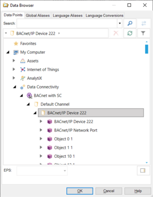 11. Expand the “BACnet with SC” and browse for the desired channel, device, or object. Double click the desired channel/device/object or click OK to confirm the dialog.