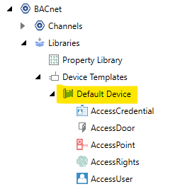 From the Workbench, you need to expand your project and then browse for the device template and find the BACnet configuration provider.