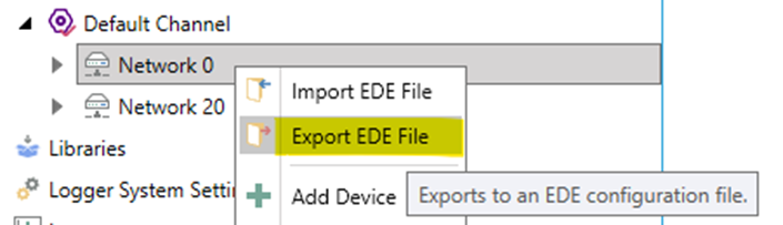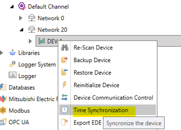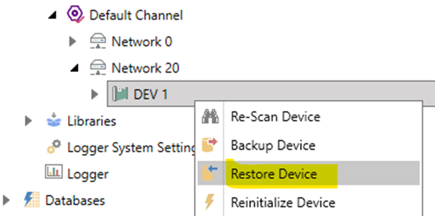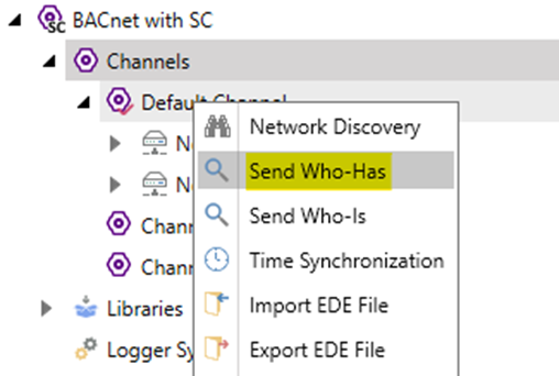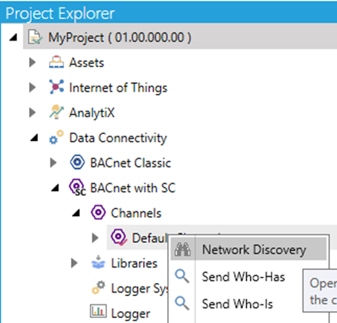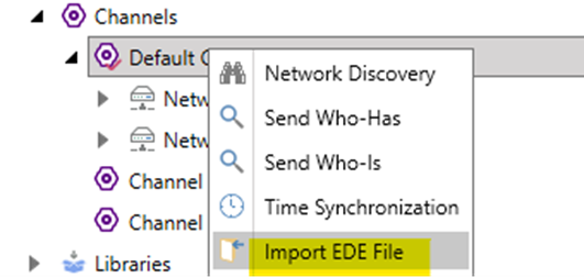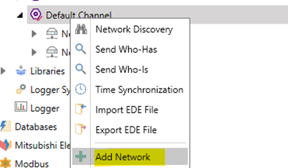 It is possible to discover the devices on each Channel level. So, for example, to browse for the Default Channel, right-click on it and select ‘Network Discovery’.