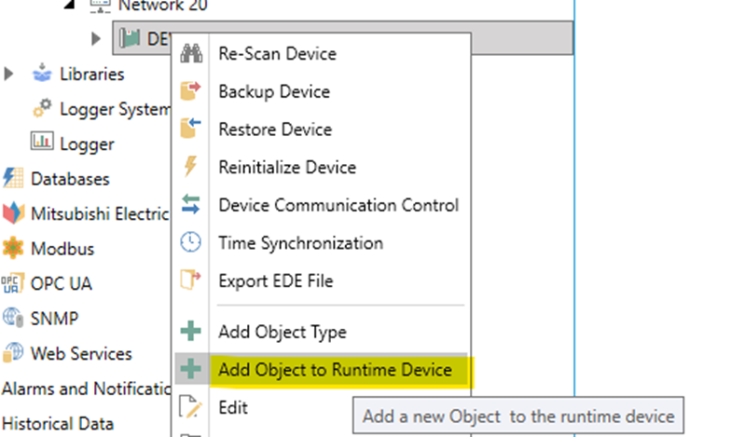 8. Then expand BACnet address space to find your desired Trend Log object (or Trend Log Multiple object) providing trend data.