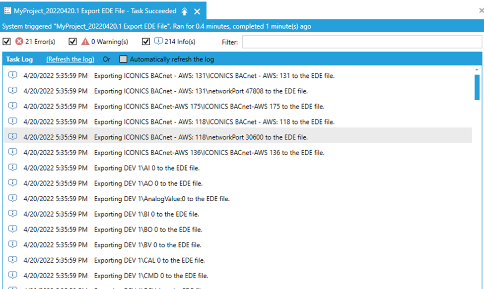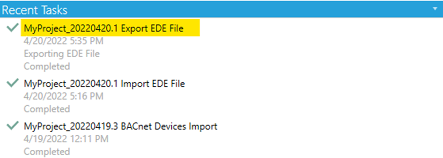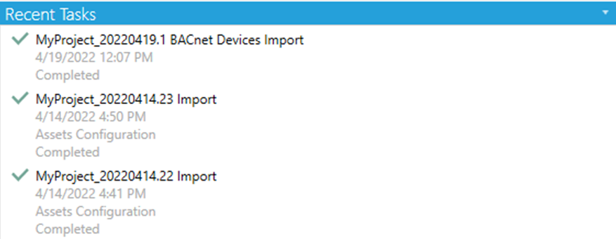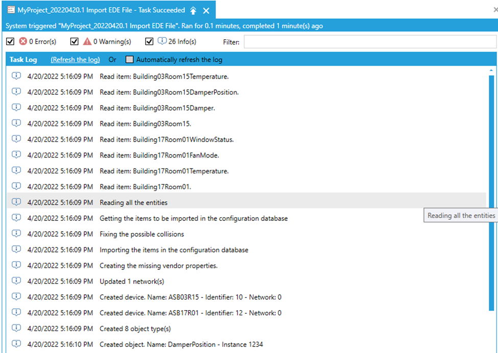 Once the task is completed, all the entities will be now browsable in the project tree.