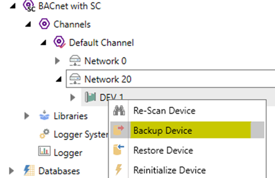 7. In the Data Browser expand ‘Data Connectivity’ and ‘BACnet with SC’.