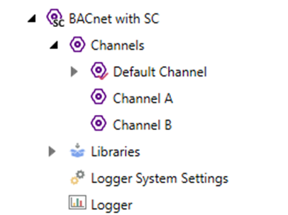 The Channel Root entity is the top most element in BACnet hierarchy. It contains the available Channels.