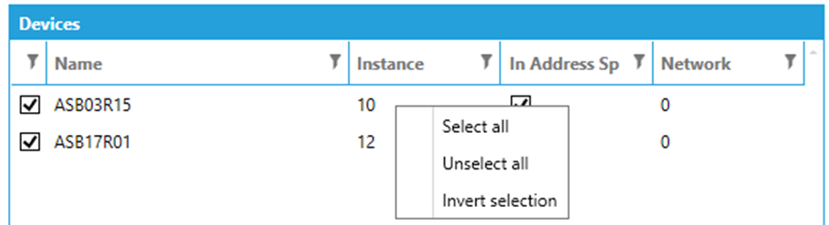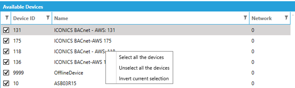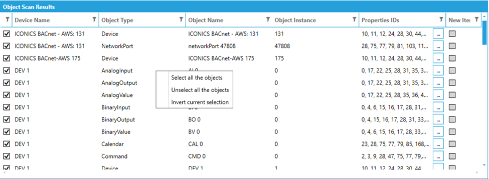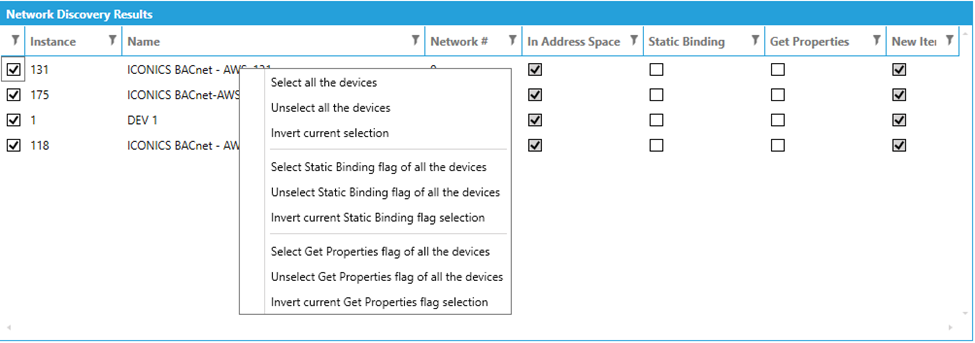 You can also select multiple devices (and set Get Properties/Static Binding flag) in one shot through the available context menu.