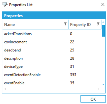 Properties IDs - The list of reported properties of the object as a string representation separated by a comma. You can click on the ellipsis button to see the list of the properties: