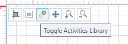 If the Activities Library is not visible, click on the Toggle Activities Library icon in the grid, as pictured in the following image. This should open the Activity Library on the left.
