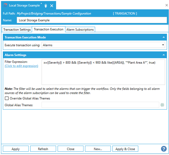 Override Global Alias Themes -True to use a set a global alias from within the transaction's Alarm Sources to overwrite any other(s).