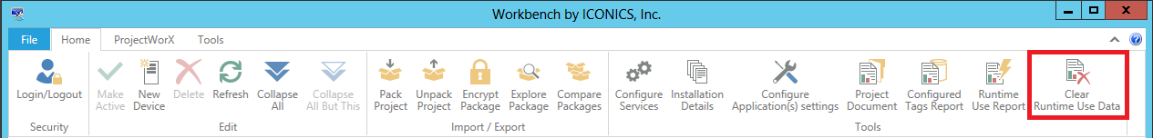 Clear Runtime Use Data Button in Tools Section of the Home Ribbon in the Workbench
