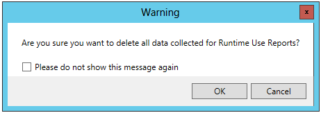 Click OK to proceed in deleting all data collected for Runtime Use Reports, else click the Cancel button.