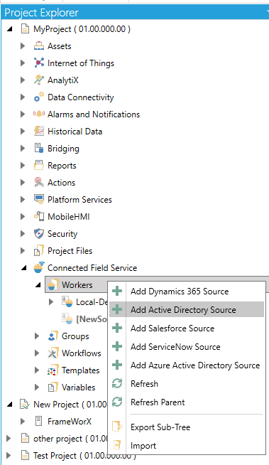 Right-click on the Workers branch, then select Add Active Directory Source from the pulldown menu, as shown below.