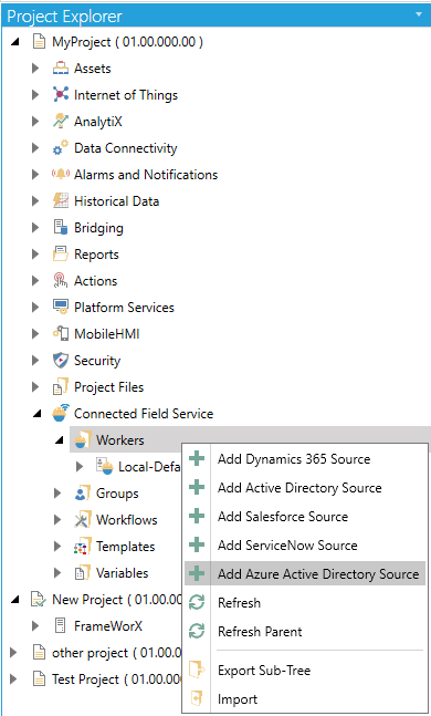 Right-click on the Workers branch, then select Add Azure Active Directory Source from the pulldown menu, as shown below.