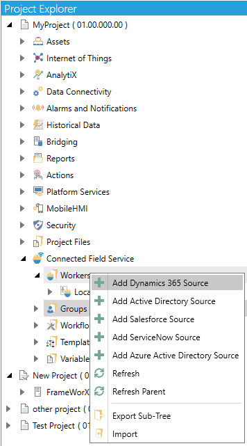 Right-click on the Workers branch, then select Add Dynamics 365 Source from the pulldown menu, as shown below.