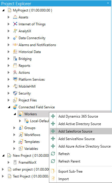 Right-click on the Workers branch, then select Add Salesforce Source from the pulldown menu, as shown below.