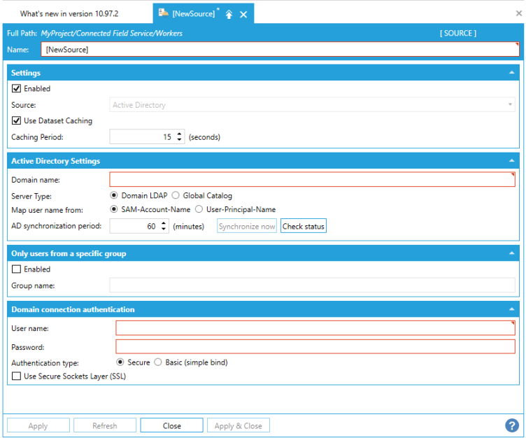 Add Active Directory Source from the Project Explorer