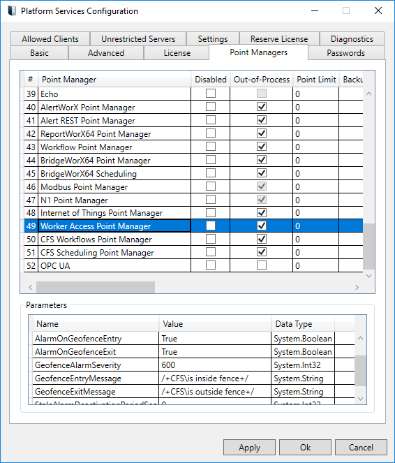 Related to geofencing, there are new parameters exposed in the Platform Service Configuration for the CFSWorX Workers Point Manager: