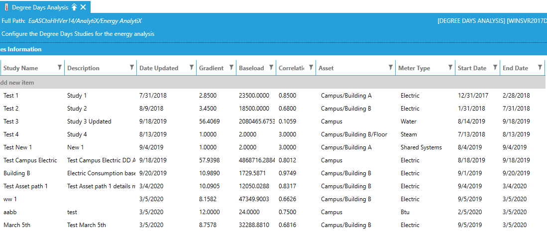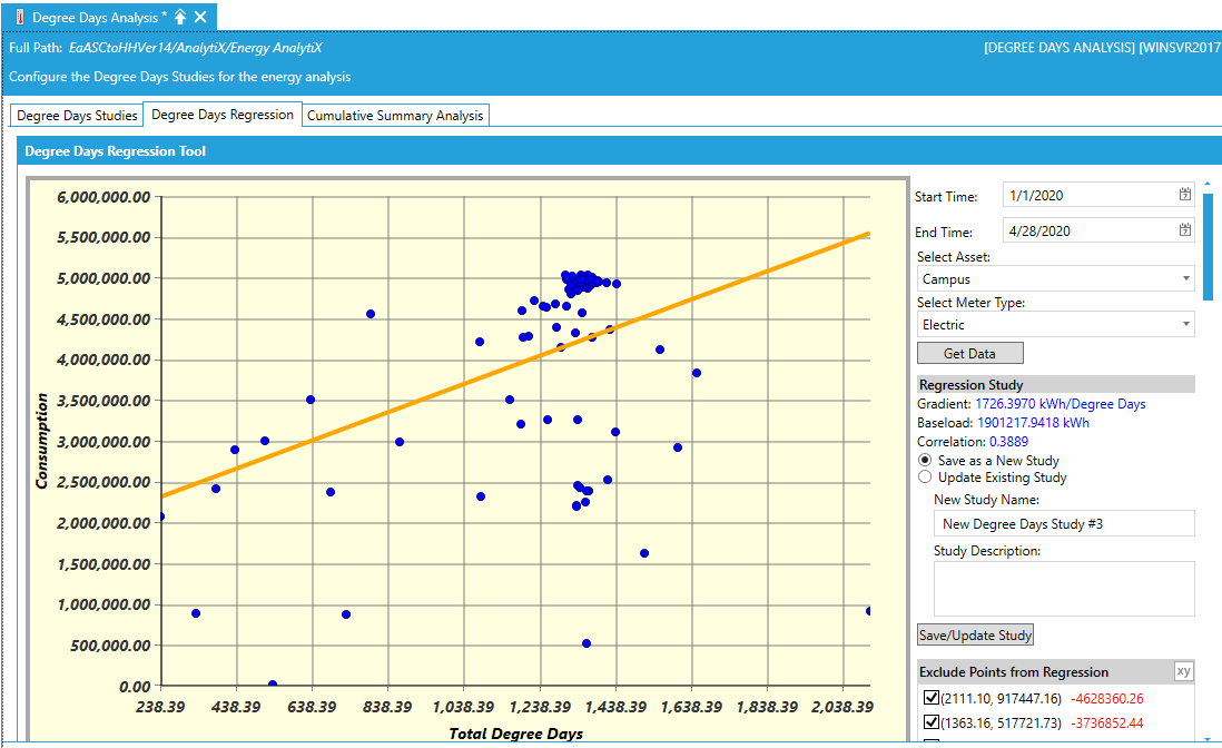 Degree days studies can be entered manually or by using the Degree Days Regression tab and creating a new degree days study.