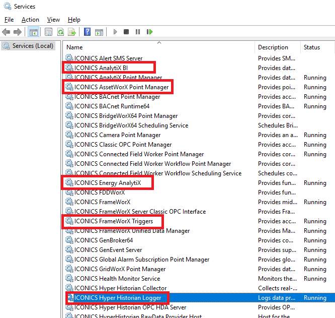 For Energy AnalytiX to properly collect, calculate and display data the following services must be running: