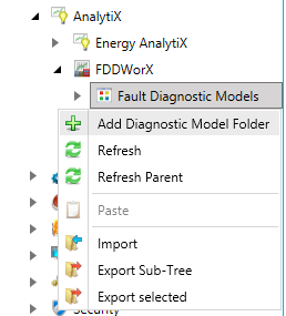 Right-click on the Fault Diagnostic Model branch, then click on "Add Diagnostic Model Folder", as shown below: