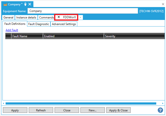 Fault Definitions Sub-Tab within the FDDWorX Tab