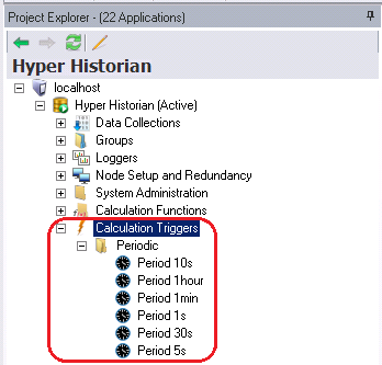 In the Hyper Historian Project Explorer in GENESIS64 Workbench, expand the tree so you can see the Calculation Triggers node.