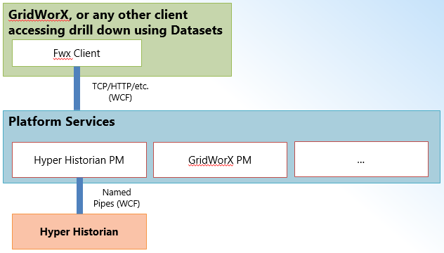 As of Version 10.9, the Drill Down capability uses Hyper Historian as the Drill Down Server and GridWorX Viewer as the Drill Down Client.