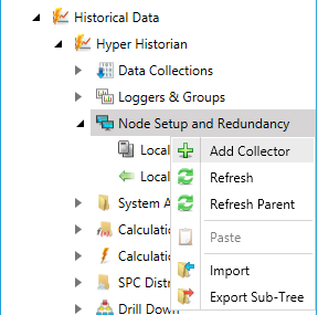 Right-click Node Setup and Redundancy in the navigation tree and select Add Collector, as shown below, or double-click an existing collector to edit it.