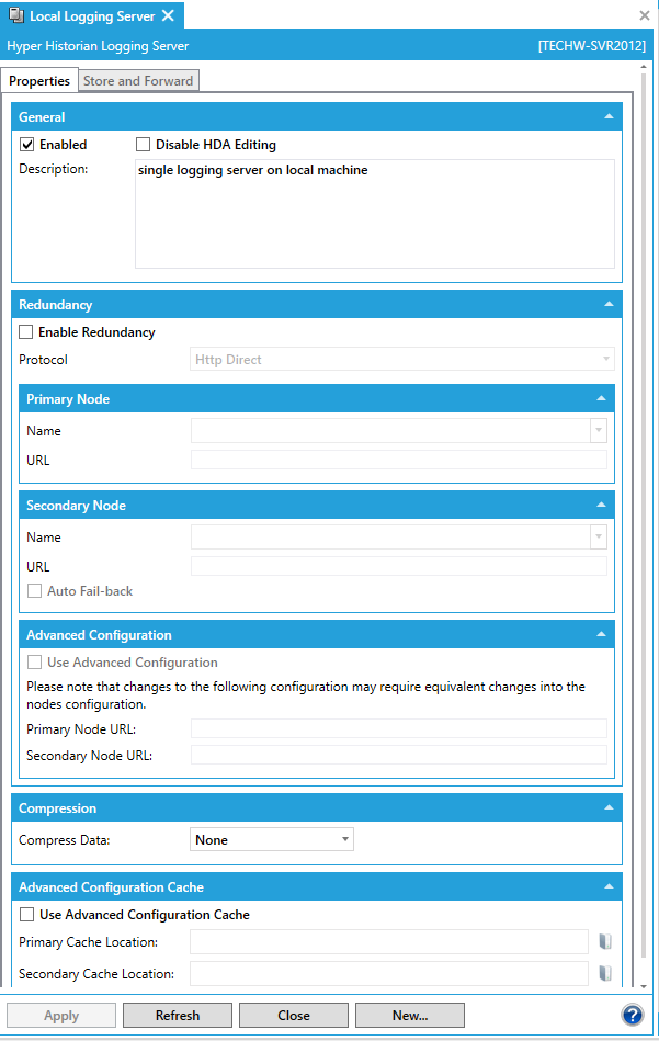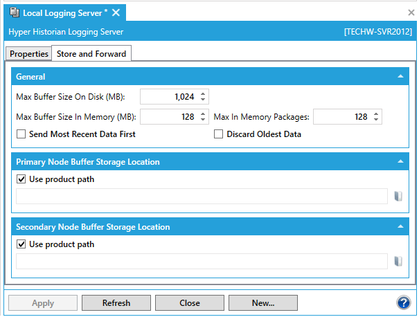 Hyper Historian Local Logging Server Properties - Store and Forward Tab