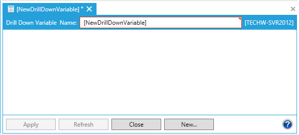 This opens the Drill Down Variable properties window, shown below, beneath the Project Details section in the Workbench. Enter a name in the Drill Down Variable Name text entry field.