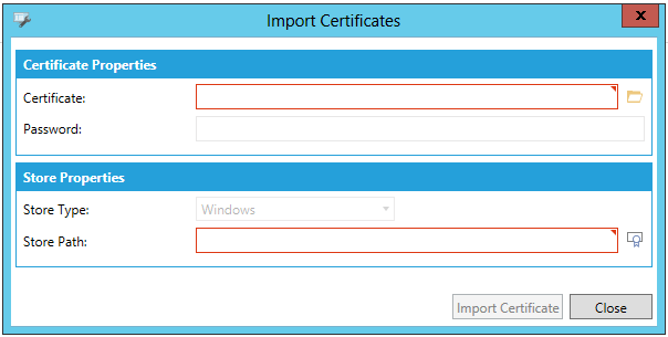Clicking this button opens the Import Certificates window, shown below.