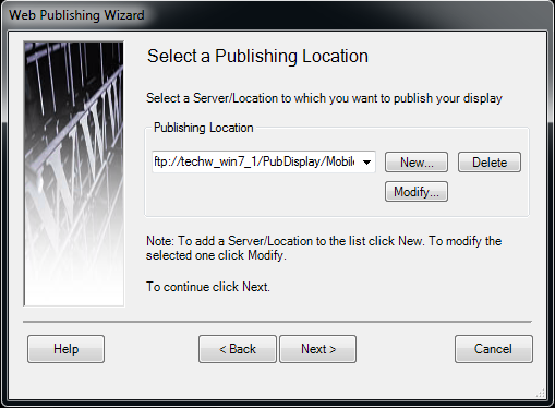 - The Select a Publishing Location dialog box is displayed. Verify the location entered.