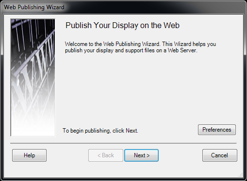 - The Web Publishing Wizard appears. On the Publish Your Display on the Web welcome screen, click Next.