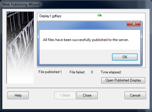 - Click Publish to publish the selected files to the server. A message appears that the files have been published successfully to the server.