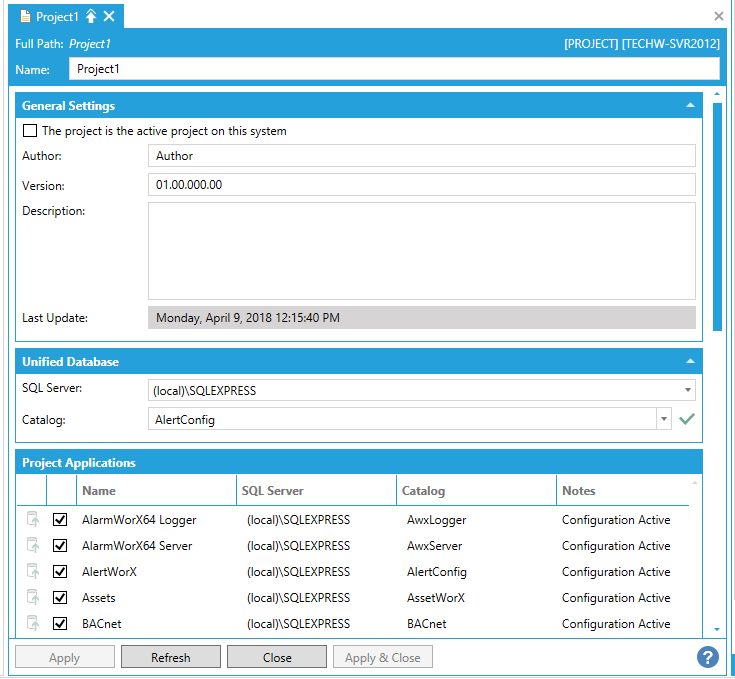 The project is the active project on this system -This may be automatically checked if you are editing the initial default project. As you create additional projects, you can use this checkbox to designate the active project on a specific system.