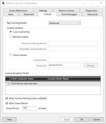 Allow Grace Period - Select this checkbox in order to allow for a license grace period. Once activated, you can set a period of time (in minutes) in the text entry field.