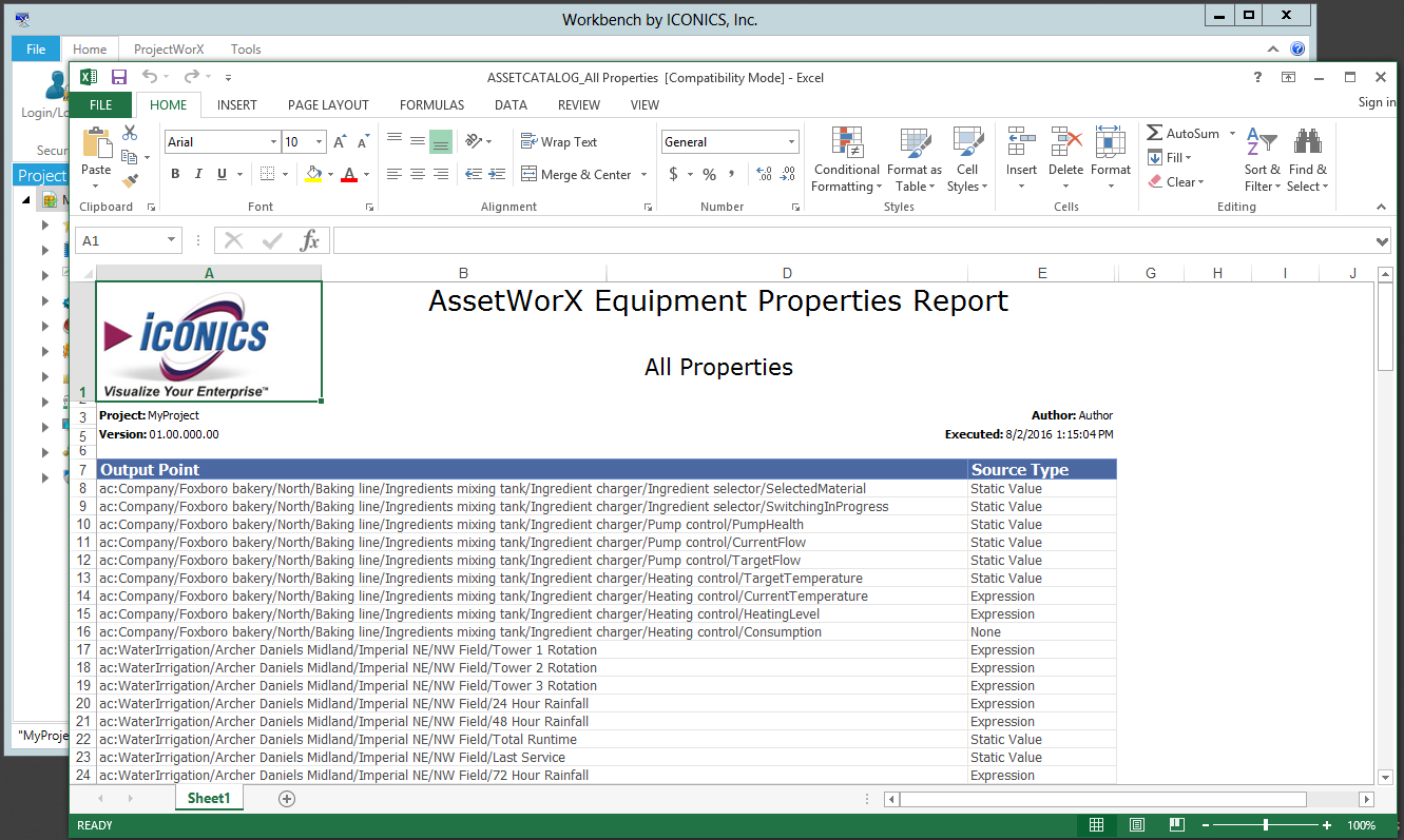 Configured Tags Report Opened in Excel