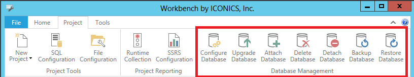 The Database Management section of the Project ribbon in the Workbench allows users to perform a number of database-related actions.