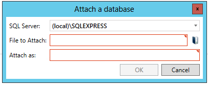 - Click on Attach Database to attach an existing database. The Attach a database window, shown below, appears.