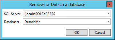 - Click on Detach Database to detach a database from the selected SQL server. The Remove or Detach a database window, shown below, appear.