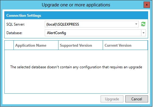 - Click on Upgrade Database to upgrade one or more configurations. The Upgrade one or more applications window, shown below, appears.