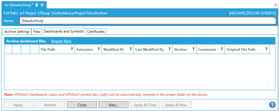 (Import files) -Clicking this link opens a file browser, where you can navigate to your selected dashboard/symbol files for import.