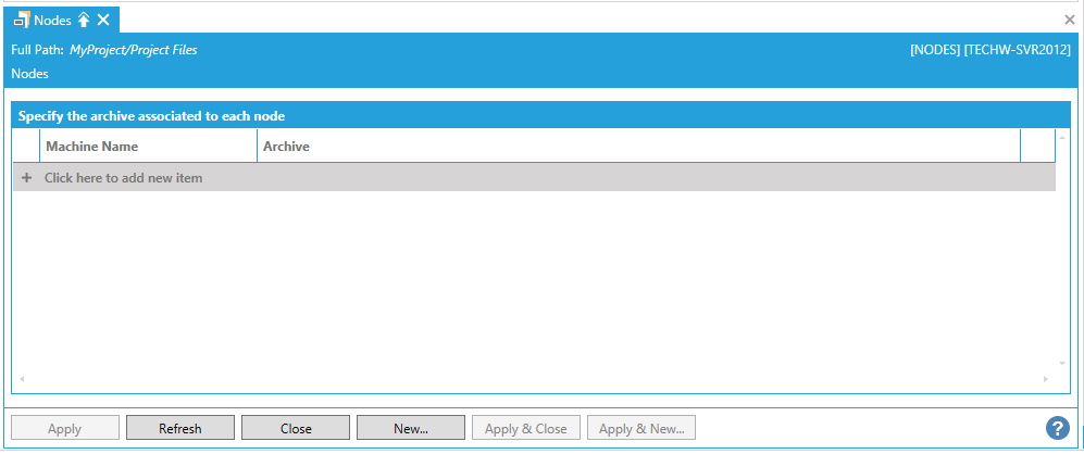 This opens the Nodes properties, as shown below. Click on the + Click here to add new item link to add a new entry to the properties.