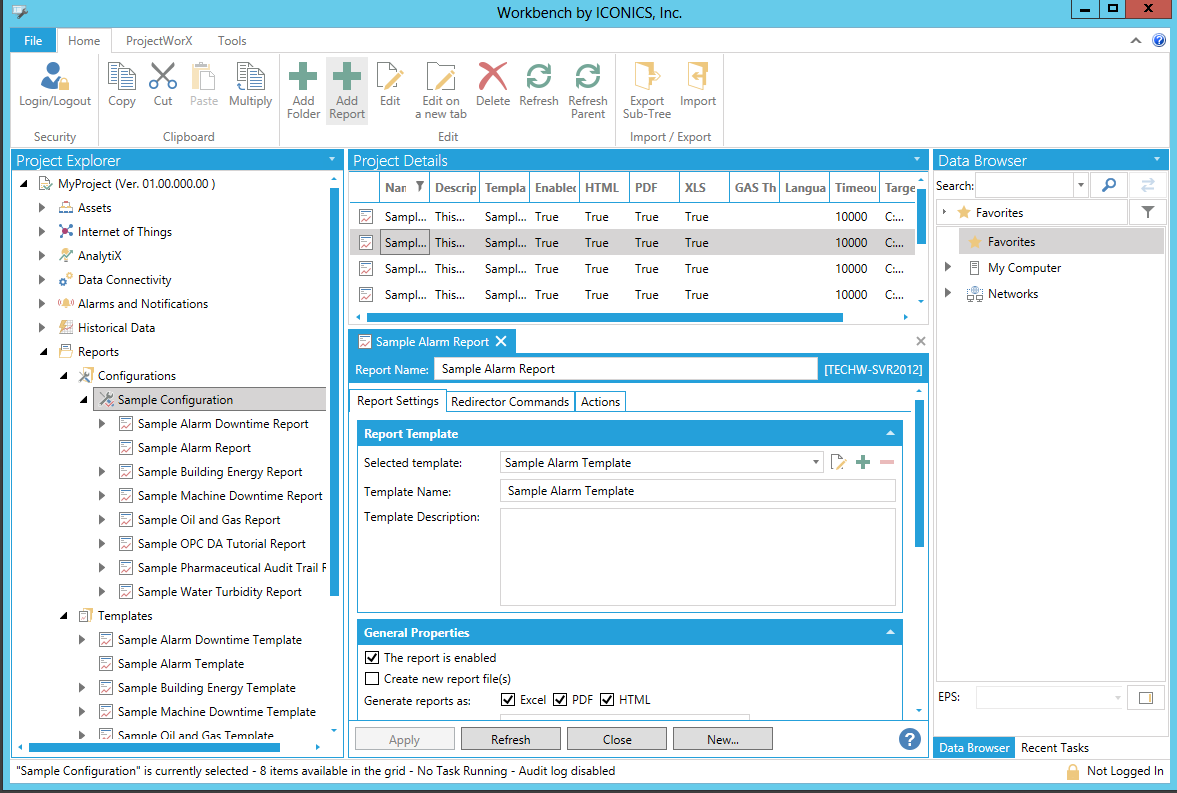 A new data reporting ability has been added to GENESIS64 via a new provider within the Workbench. Reports are integrated in the system, similar to how alarms or historical data are treated.