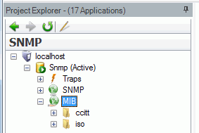 To configure general MIB settings, select the MIB tree control. To populate the MIB Items tree dictionary, you need to parse some standard MIB files. The tree control is populated by the translations retrieved by the selected MIB files, and there is a list of files parsed.