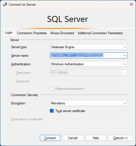 Log in to the SQL Server.