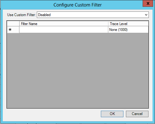 You can click within the Filter Name column to enter filter criteria or click on the ellipsis [...] button to open the Data Browser to select your filter. After you have selected your Filter Name, you can set its specific Trace Level in the next column. Options are the same as the main level Trace Level settings [None (1000), SevereError (900), Error (800), Warning (700), Normal (600), Debug (400), Debug Verbose (100) and All (0)].