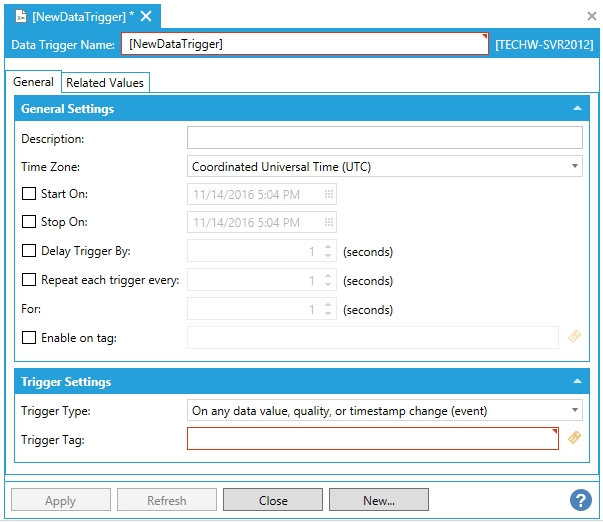 Trigger Tag - This specifies a tag that returns a single data value. Enter a trigger tag in the text entry field or click on the