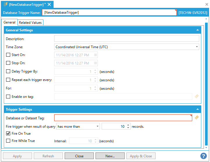 Fire While True - Click this checkbox to repeat the notification when the condition remains true after every interval period. If checked, you can then enter an Interval in seconds (or use the up/down arrows).