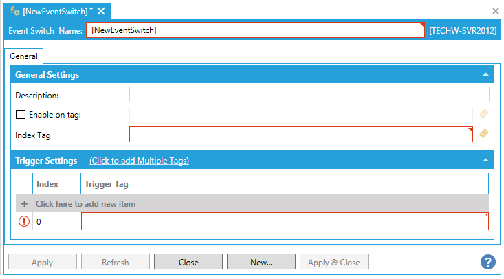 This opens the New Event Switch Properties, shown below.